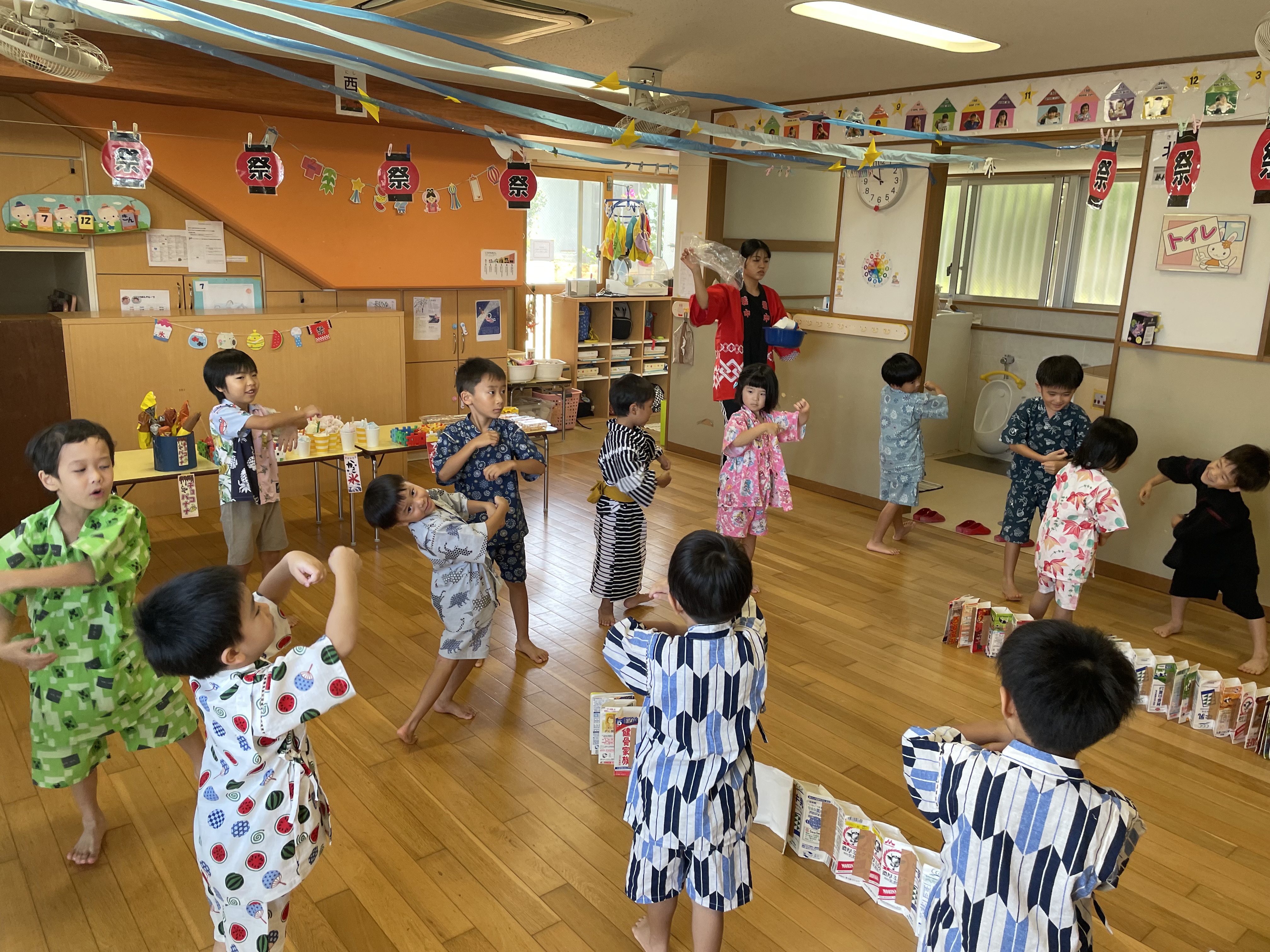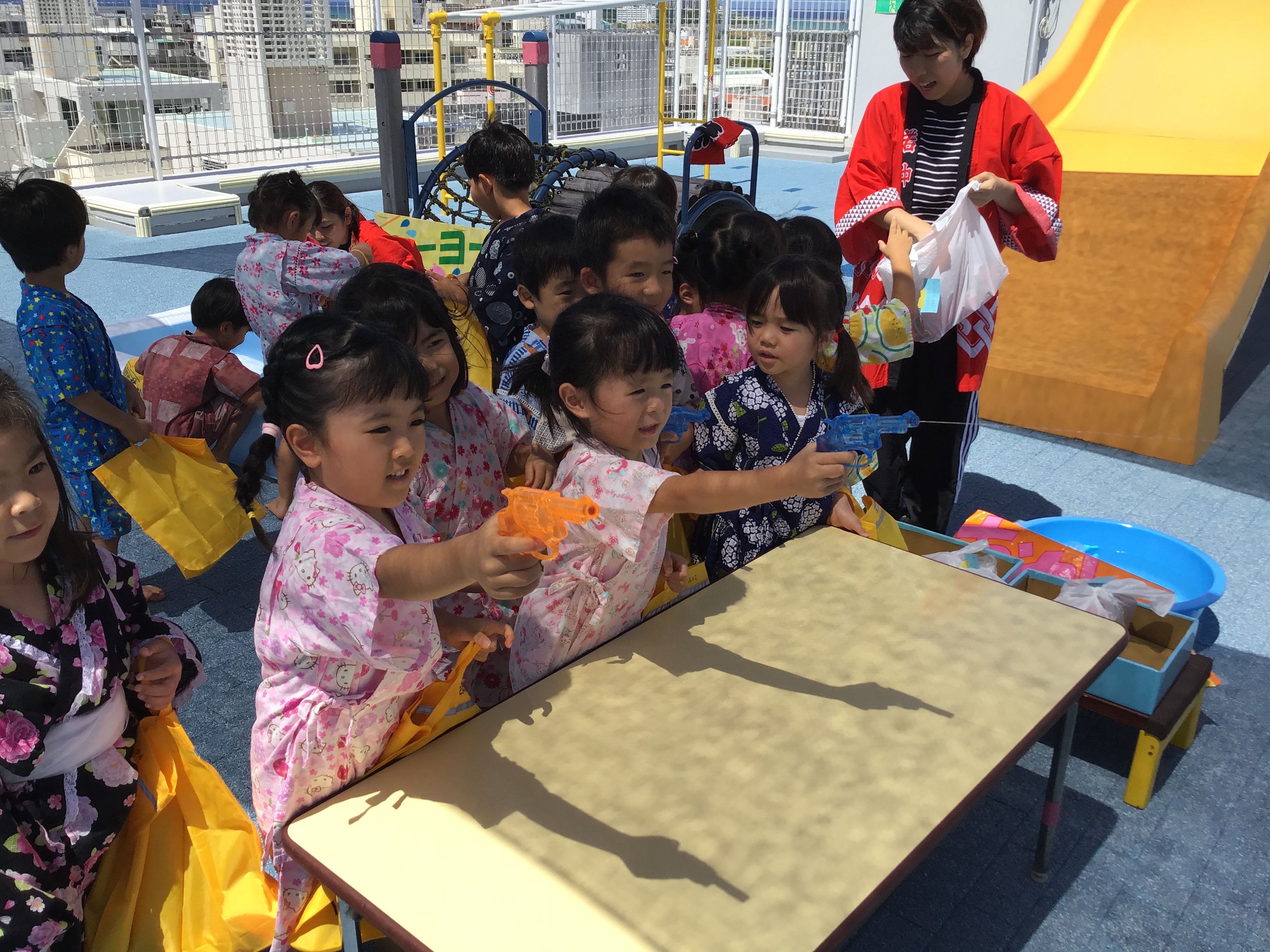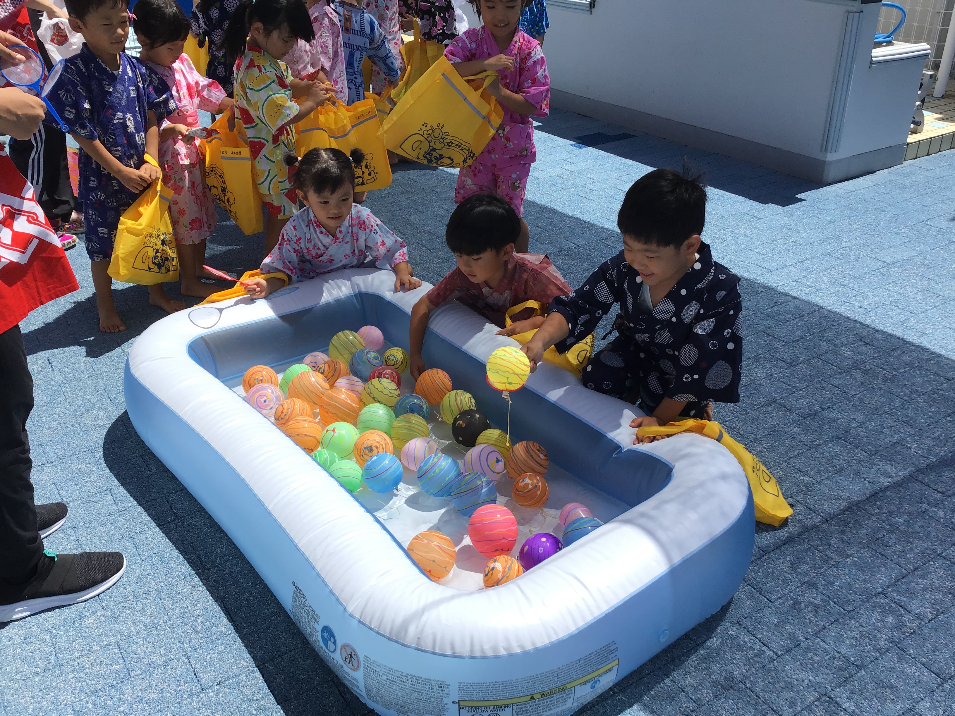 屋上で的当てゲームやヨーヨー取りをしたり、七夕祭りのお弁当を食べたりしました。