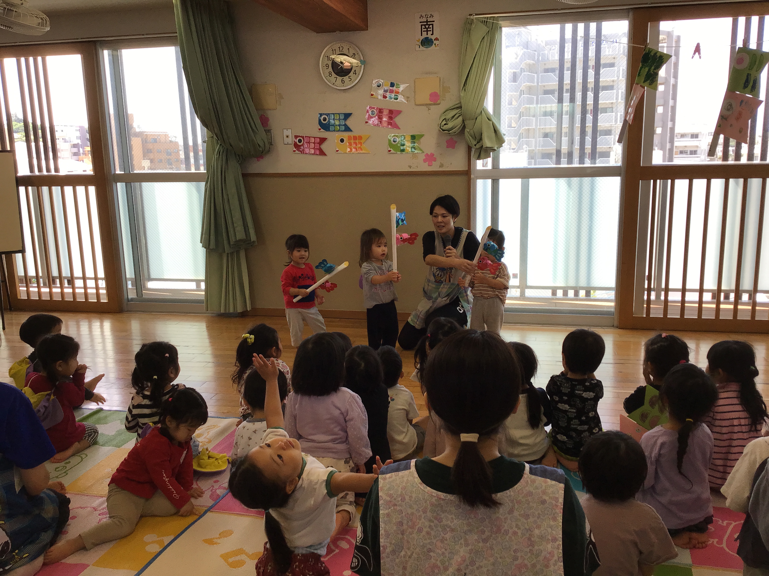 3階のお部屋に集まってこいのぼりの歌を歌ったり