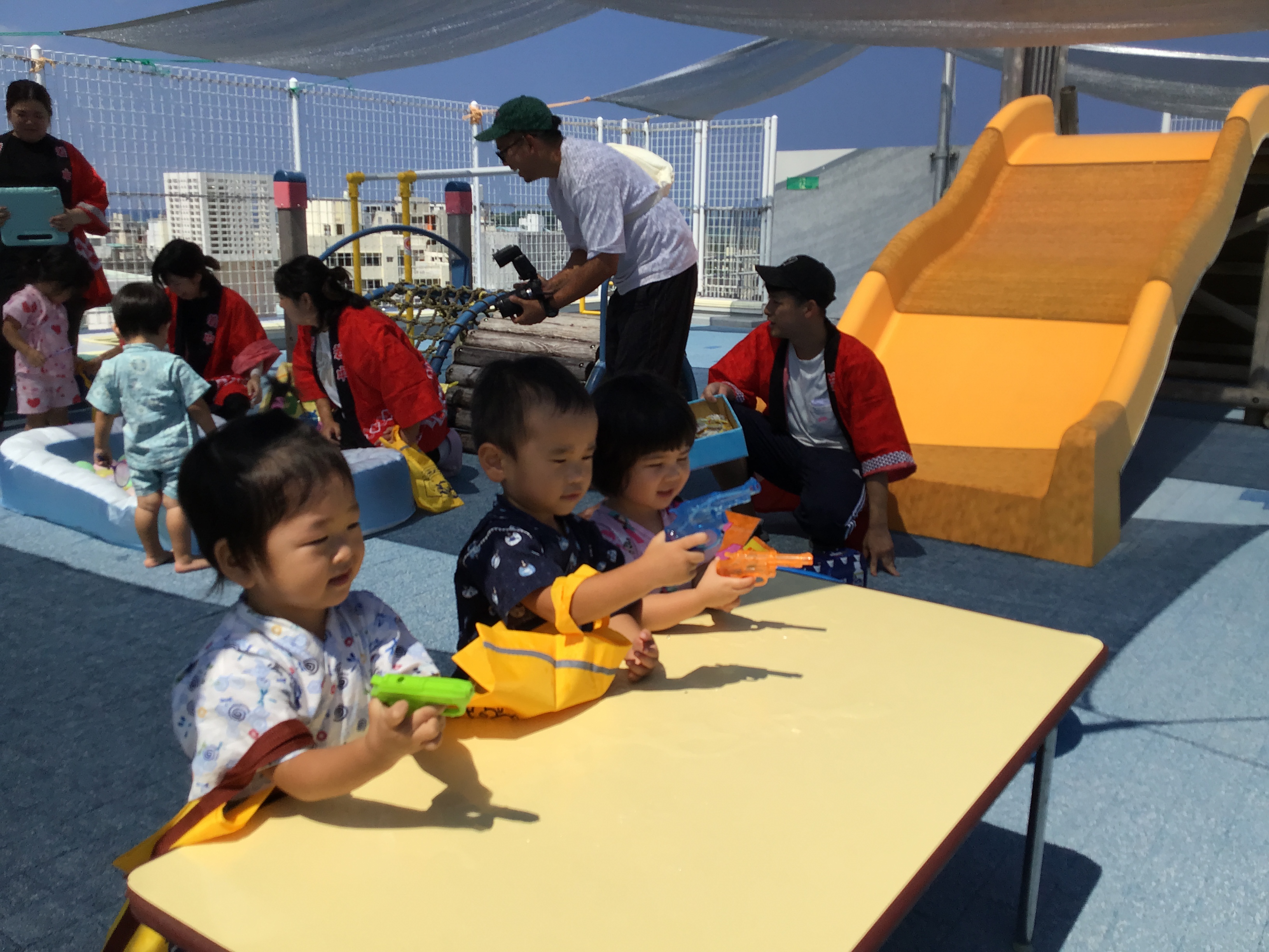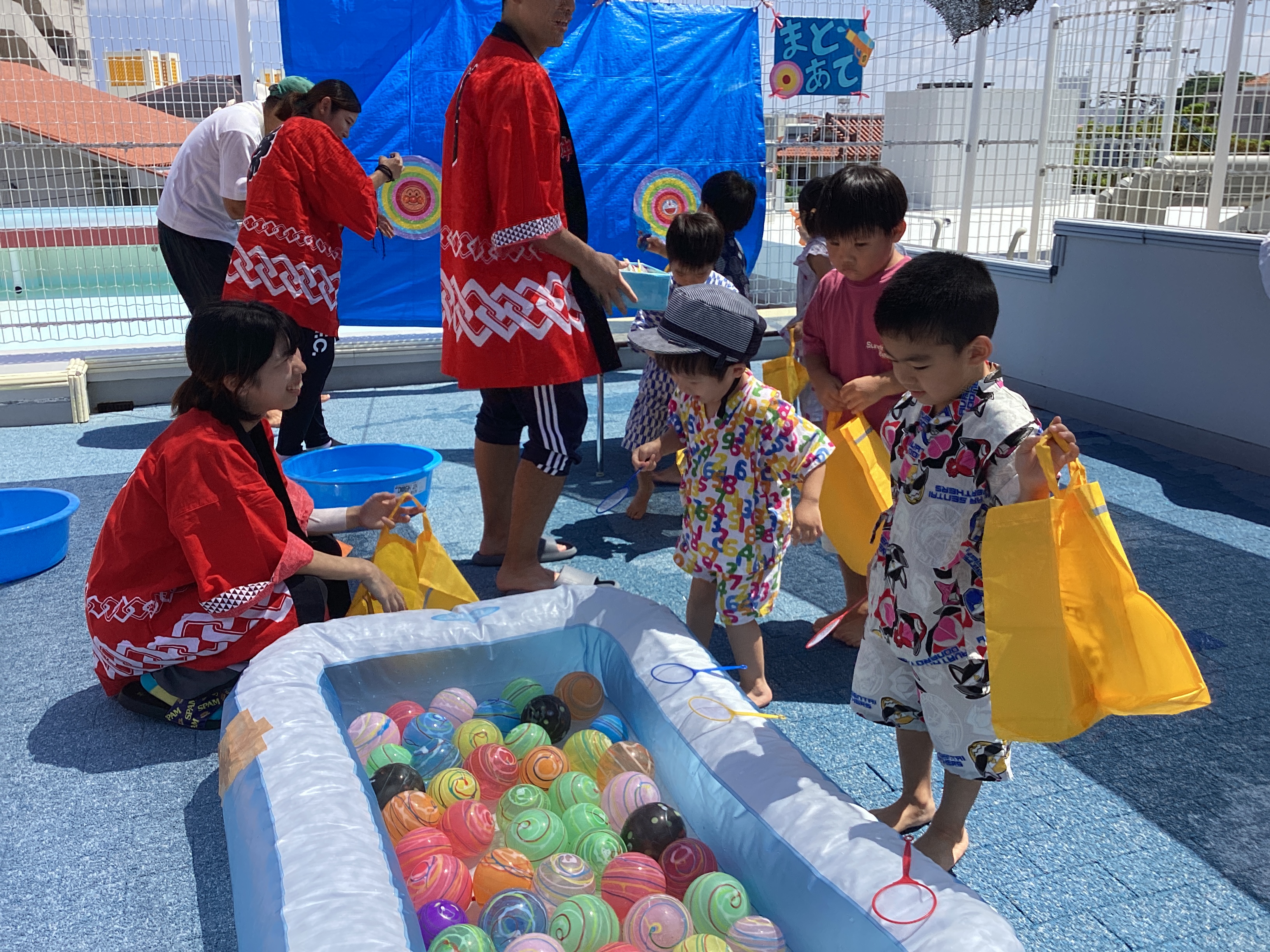屋上では的当てやヨーヨー釣りを楽しみ、お祭りの雰囲気を皆で味わいました(*'ω'*)
